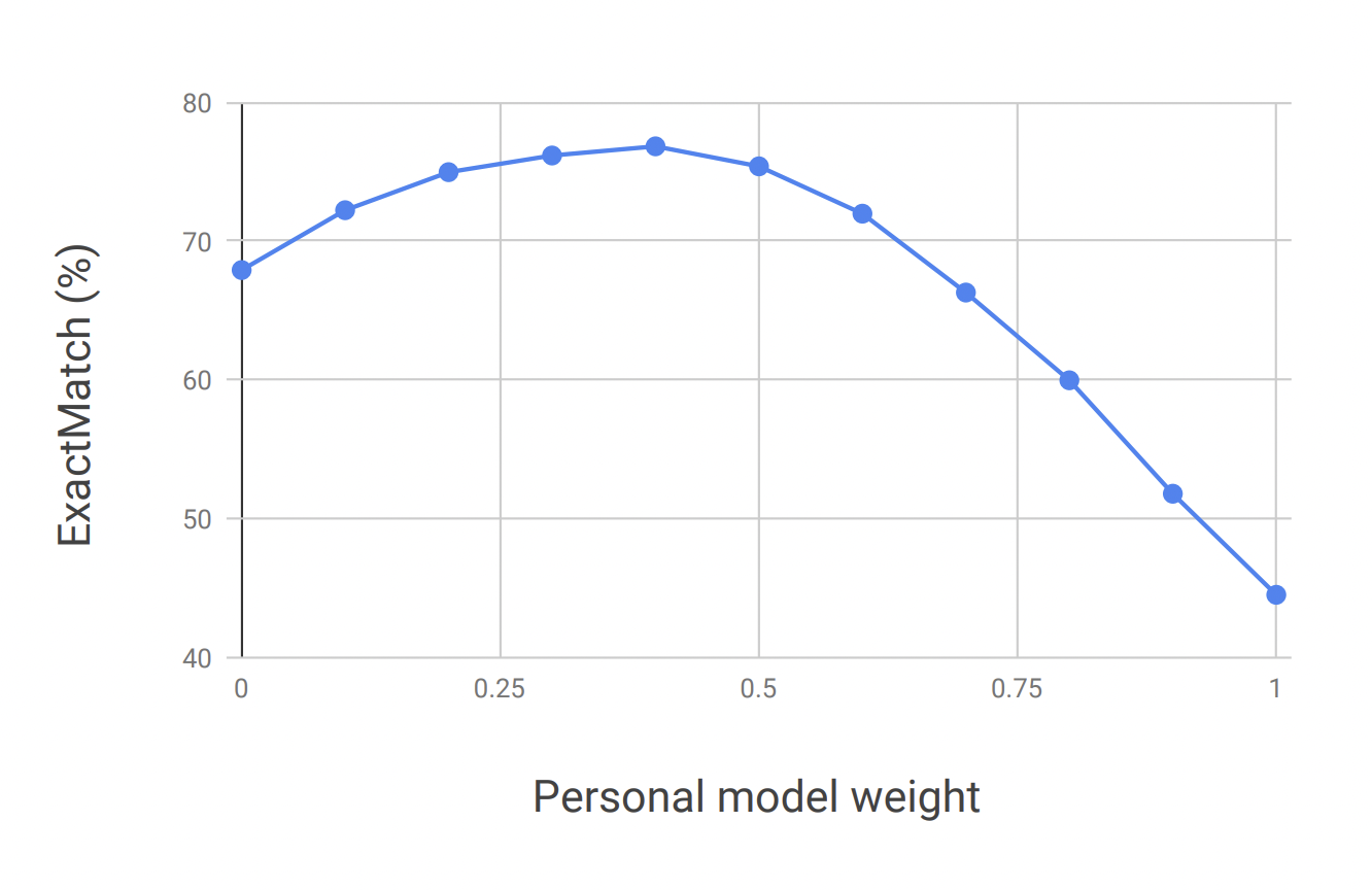 Adding personalization improved ExactMatch scores as well as suggestion acceptance rates from the users.